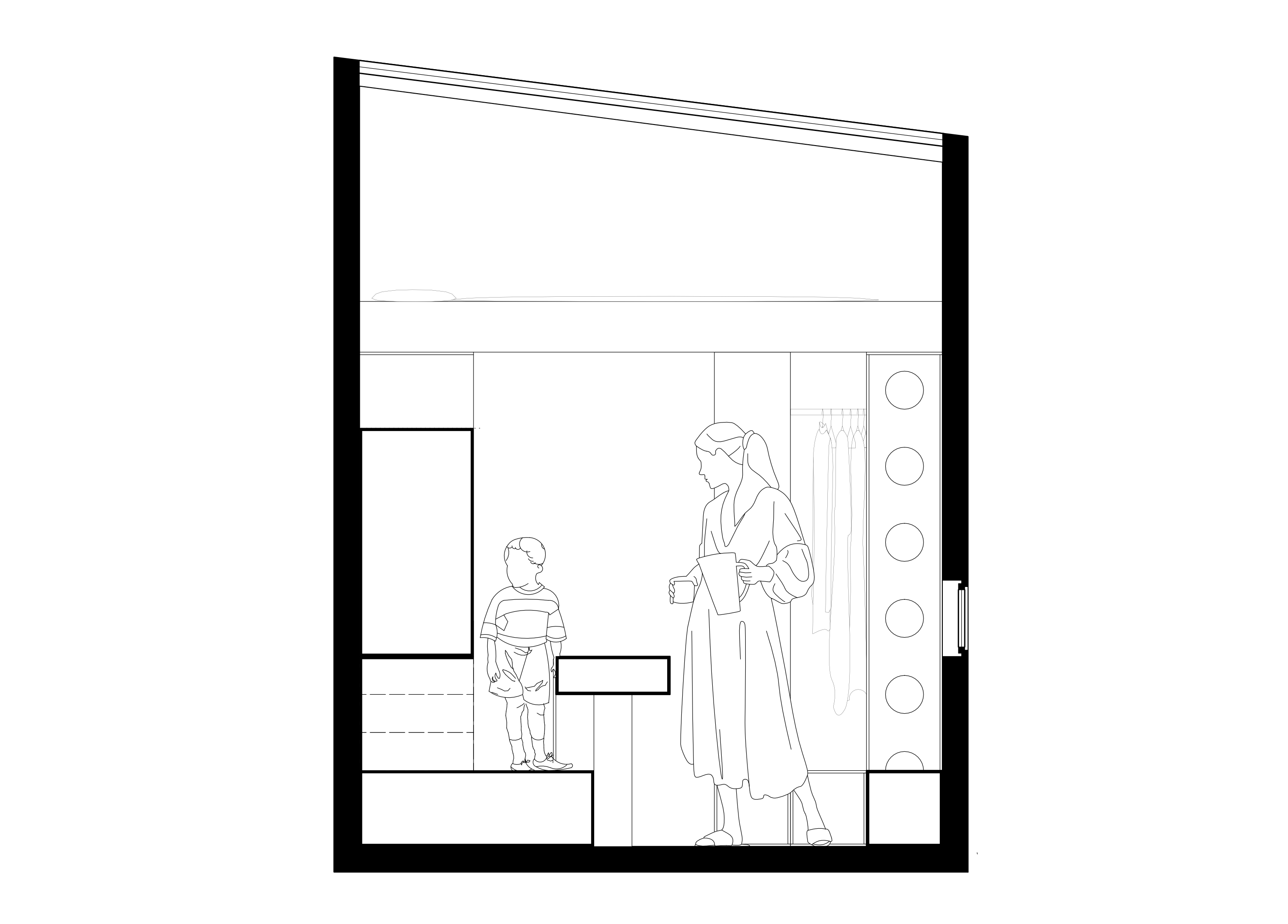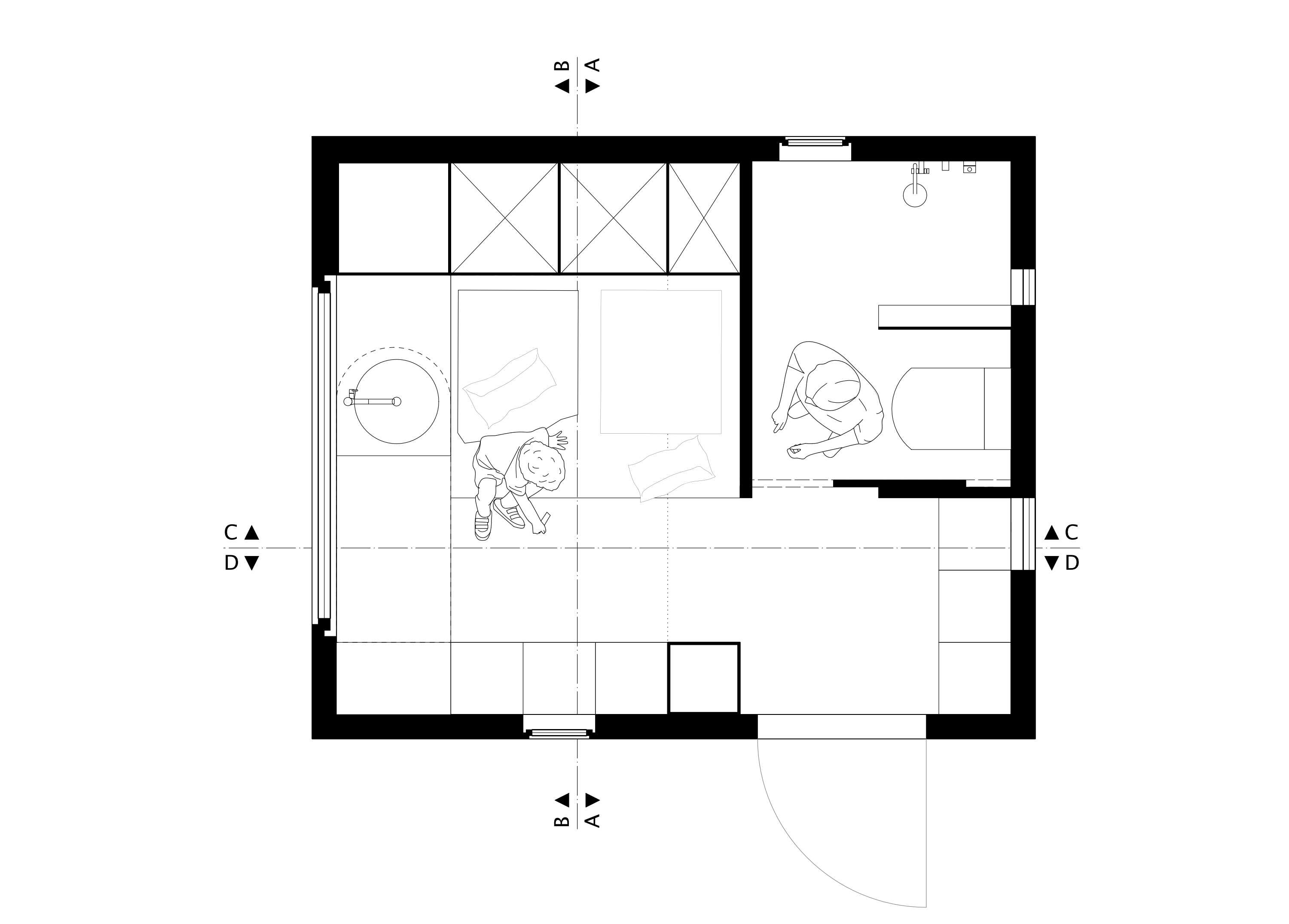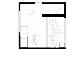 Für die Bewohner*innen, Leah Koch, Ana Pereira, und ihre zwei kleinen Kinder, wird in einem Container ein Raum entworfen, der Höhenunterschiede berücksichtigt und somit eine gleichberechtigte Nutzung für alle ermöglicht.